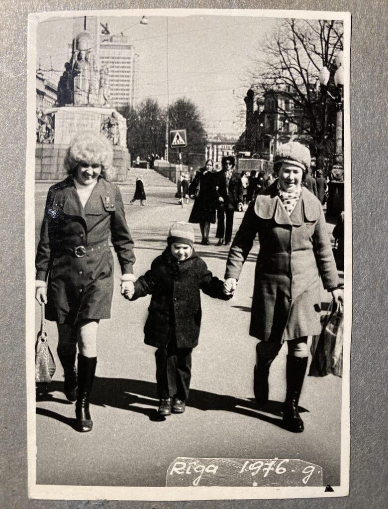 Man vēl gads līdz skolas gaitu sākšanai. Mammai skaistākais dzīves posma trešais gadu desmits. Dodamies ciemos pie mammas paziņas uz jubileju. Pie Brīvības pieminekļa kāds foto etuziasts piedāvāja iemūžināt mirkli. Nezinu kā viņš pierunāja uzņemt foto, laikam izteica komplimentus tik skaistām meitenēm ar bērnu, ka tās nespēja atteikt. Tā meitenes smaida, man norūpējies skats un mirkļa kadrs ir tapis.